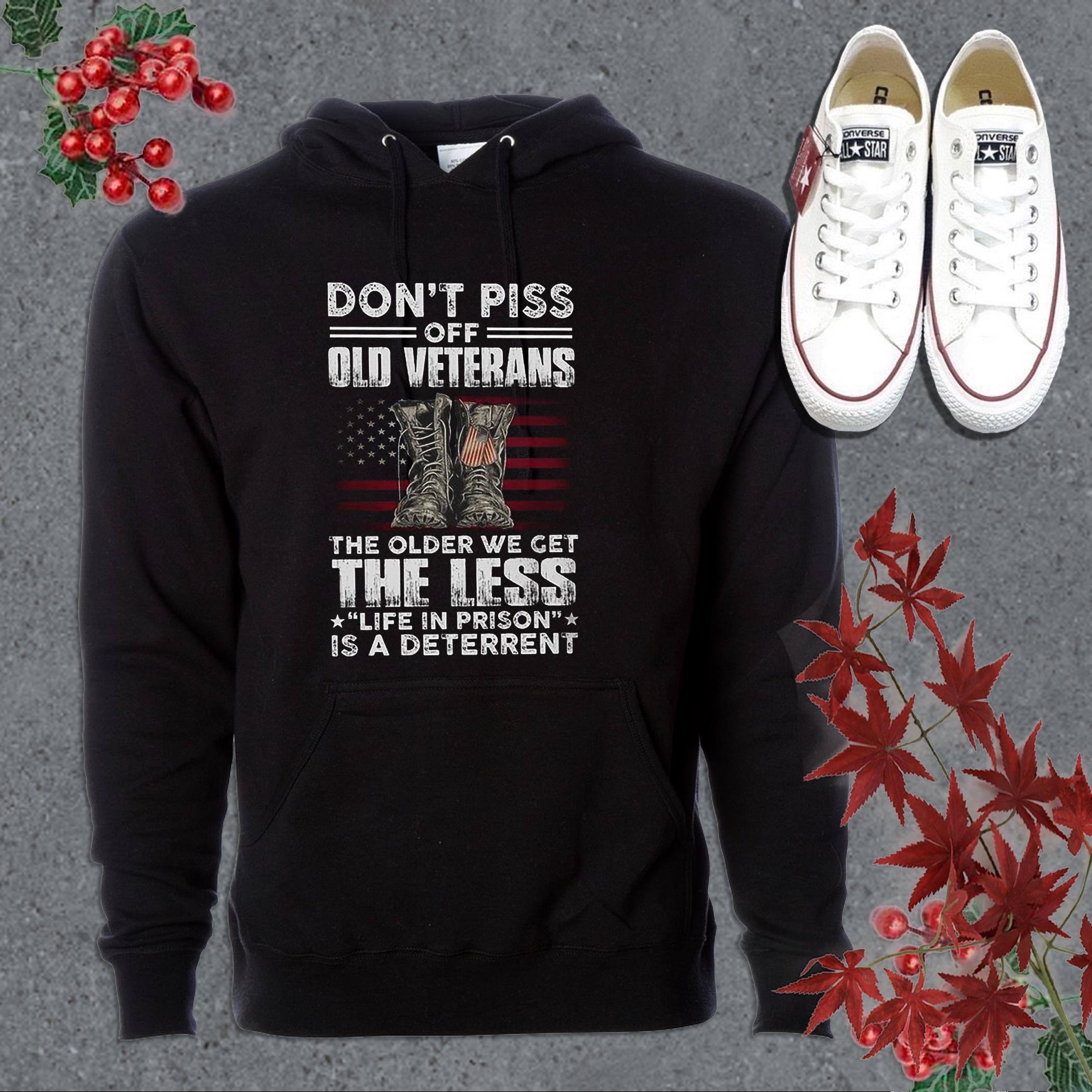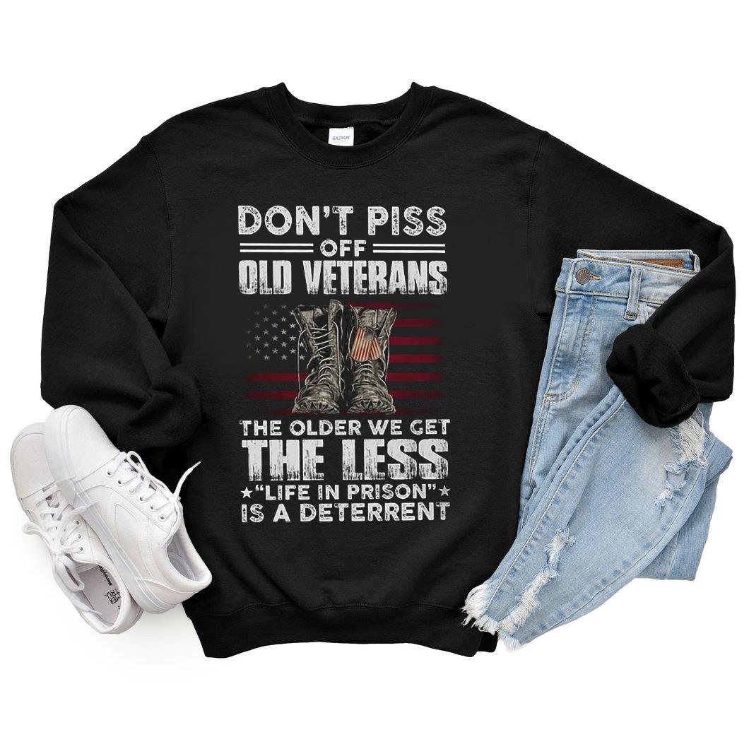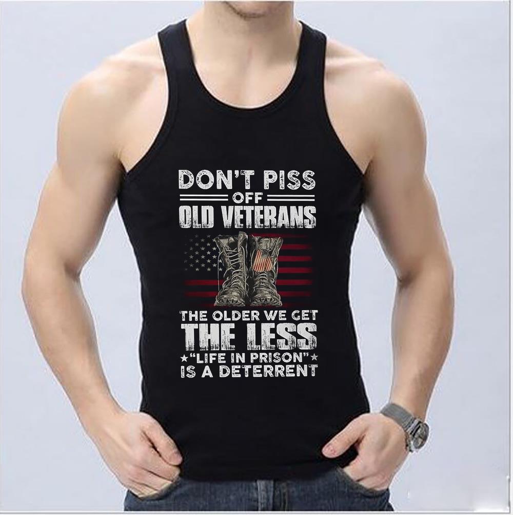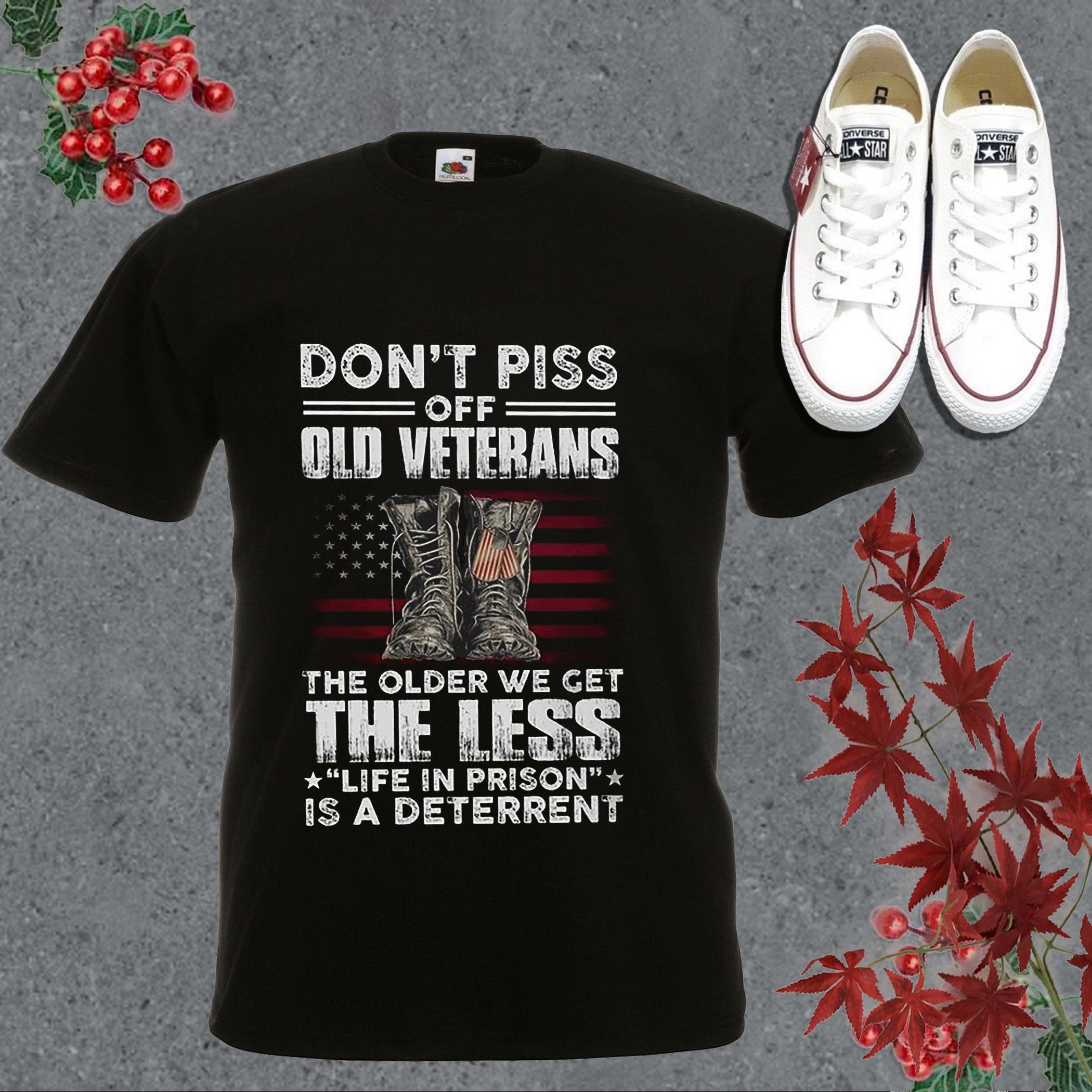Buy Now: Awesome Dont Piss Off Old Veterans The Older We Get The Less Life In Prison Is A Deterrent Shirt, Boots Dog American Flag Shirt