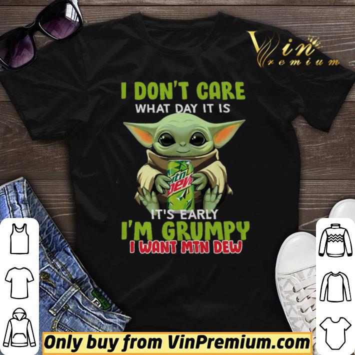 Baby Yoda Hug Mountain Dew I Don’t Care What Day It Is It’s Early I’m Grumpy shirt sweater