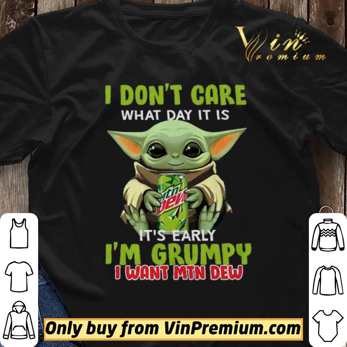 Source: Official Baby Yoda Hug Mountain Dew I Don’t Care What Day It Is It’s Early I’m Grumpy shirt sweater