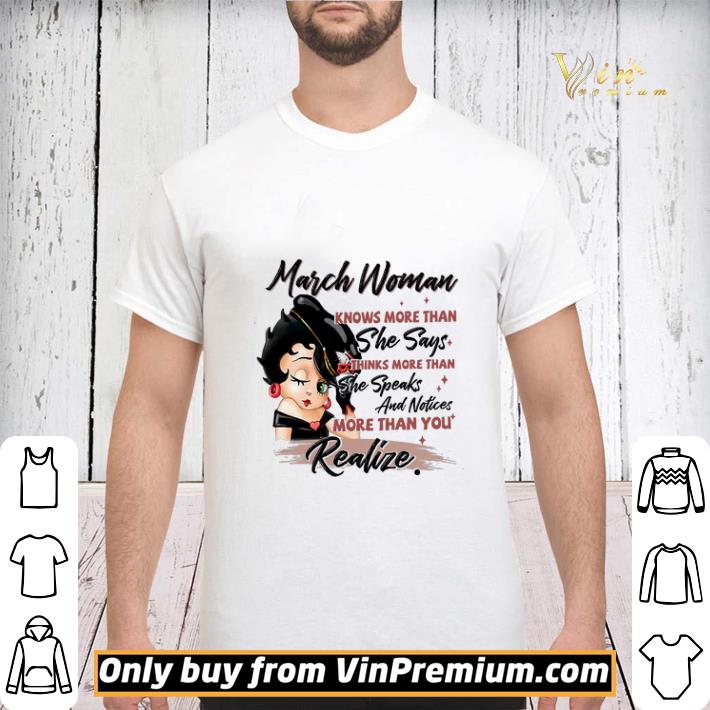 Betty Boop March Woman Knows More Than She Says Thinks More Than shirt sweater is the product that we spent most of our time to design and produce. March, Woman, Betty Boop will definitely help you to be a fashional person. Buy it here!