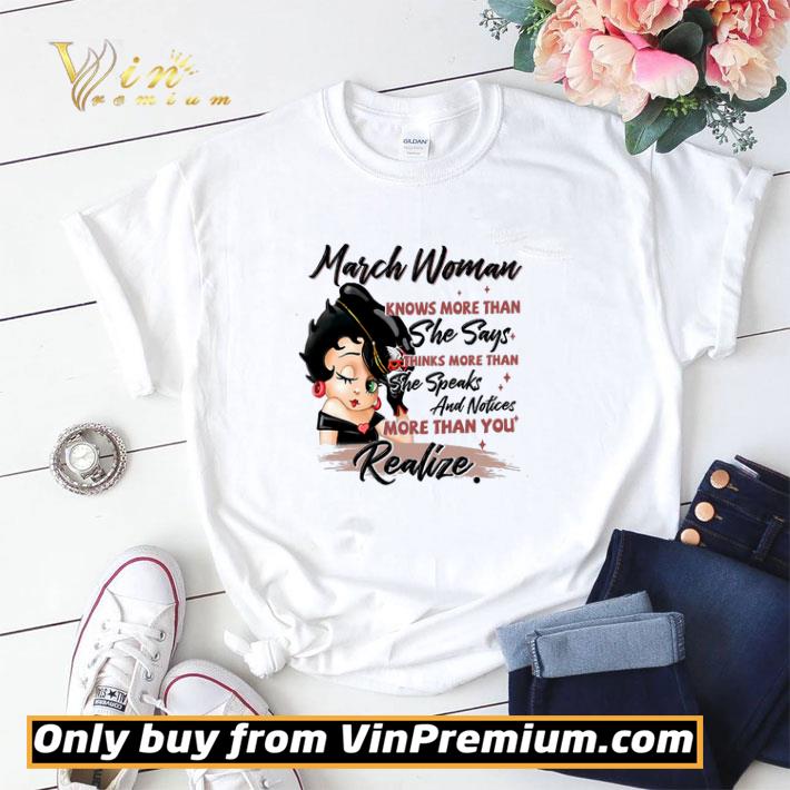 Betty Boop March Woman Knows More Than She Says Thinks More Than shirt sweater, Hoodie, Sweater, Longsleeve T-Shirt For Men and Women