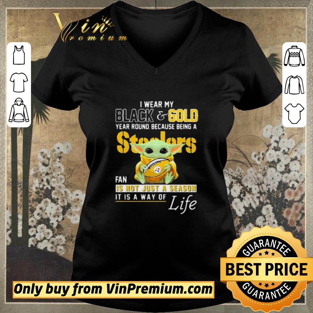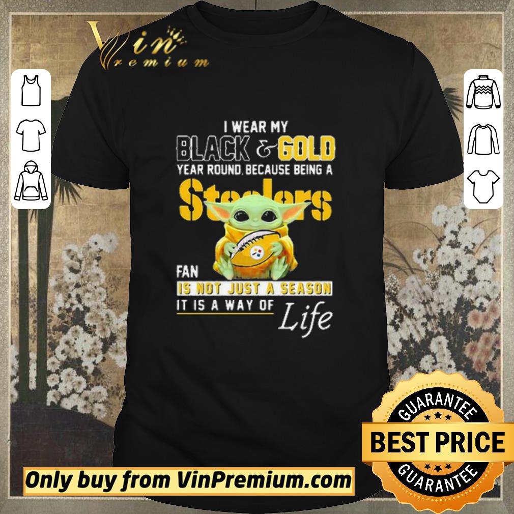 Hot Baby Yoda I Wear My Black And Gold Year Round Because Being A Steelers Fan shirt sweater, Hoodie, Sweater, Longsleeve T-Shirt For Men and Women