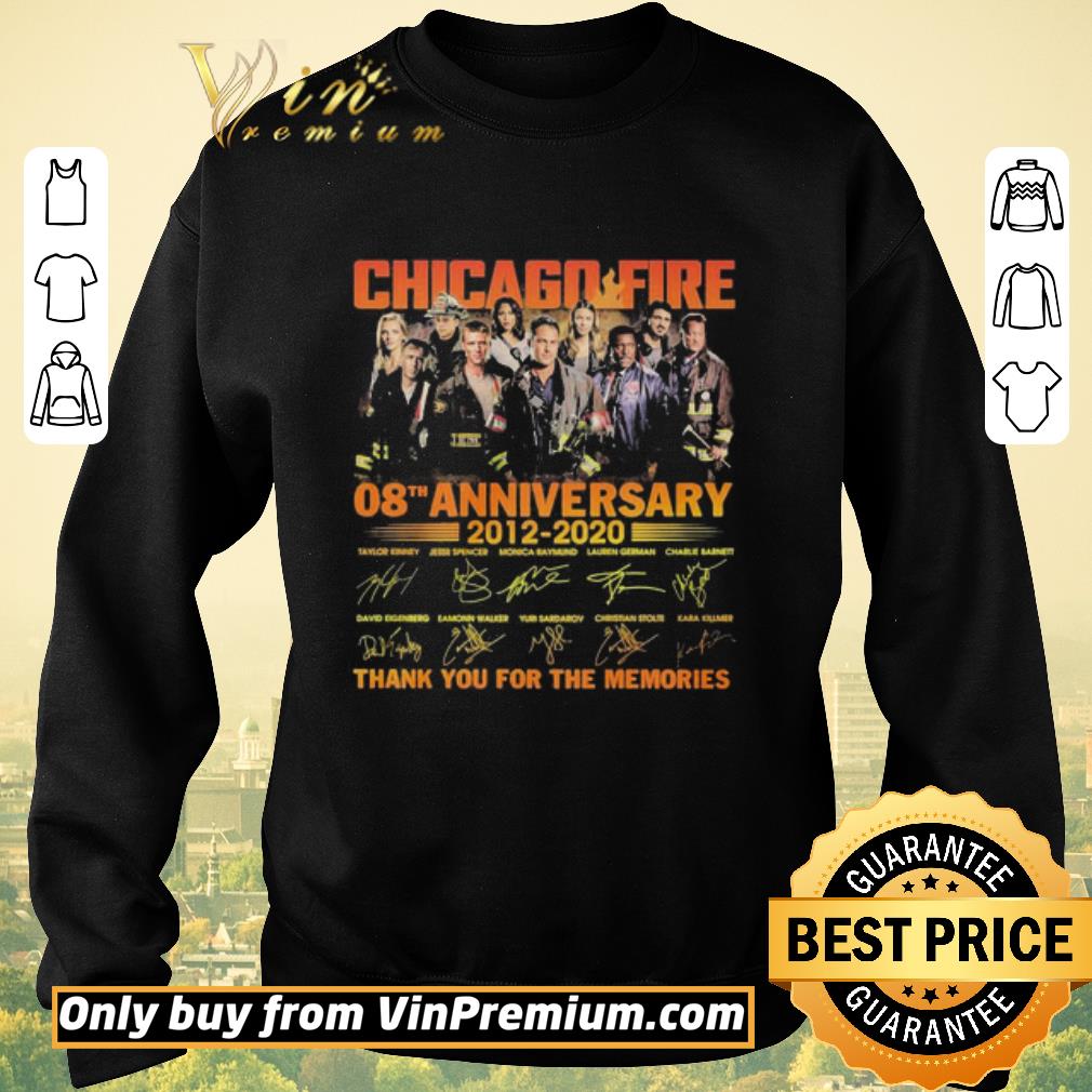 Hot Chicago Fire 08th anniversary 2012 2020 thank you for the memories signatures shirt sweater, Hoodie, Sweater, Longsleeve T-Shirt For Men and Women