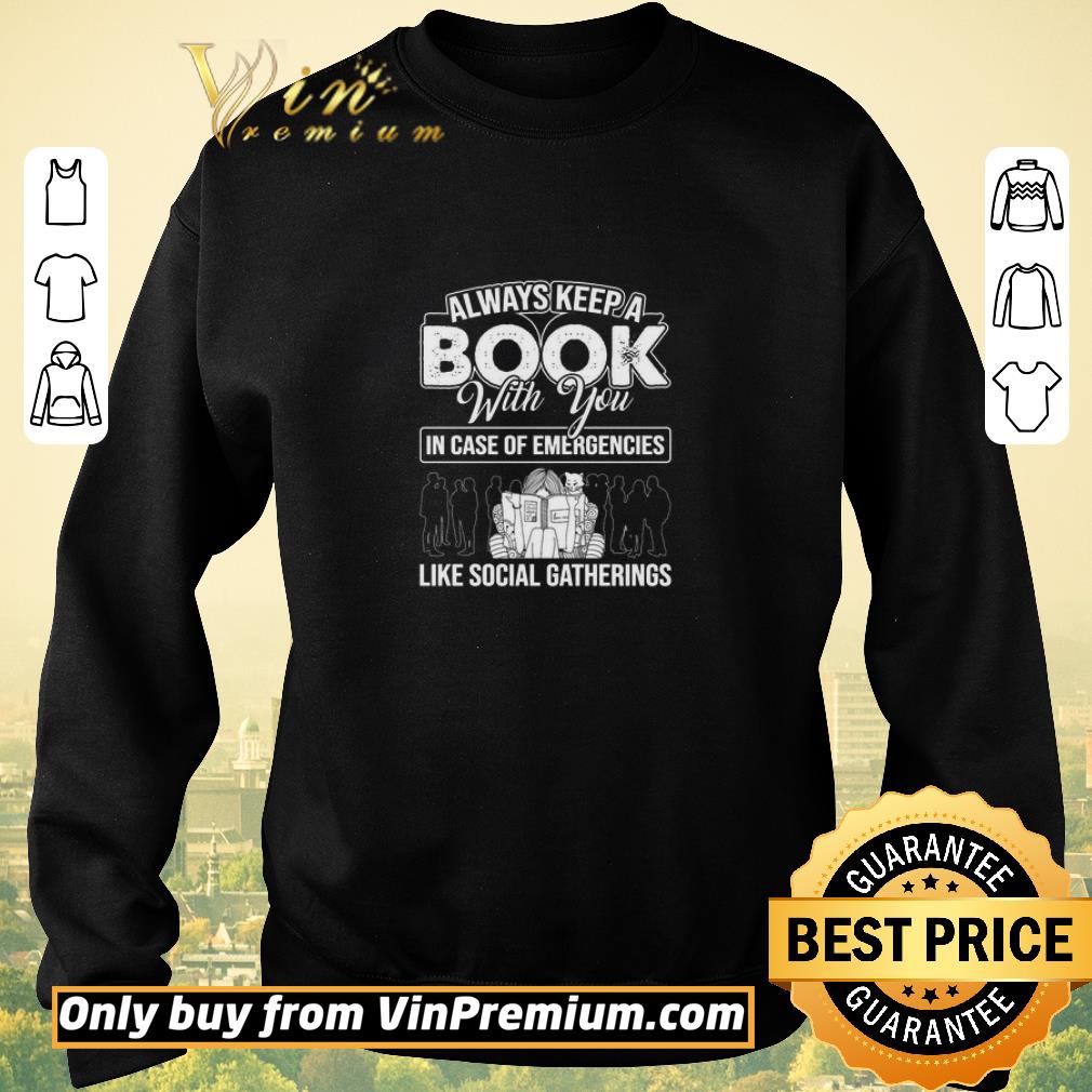 Nice Always Keepa Book With You In Case Of Emergencies Like Social Gatherings shirt sweater, Hoodie, Sweater, Longsleeve T-Shirt For Men and Women