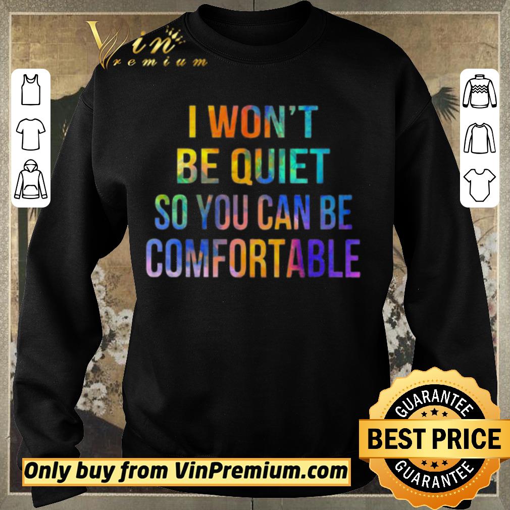 Official I won’t be quiet so you can be comfortable shirt sweater is an awesome shirt about topic Trending: comfortable that our team designed for you. LIMITED EDITION with many styles as a hoodie, long-sleeve tee, v-neck, tank-top, sweater, youth tee, sweat shirt. This shirt has different color and size, click button bellow to grab it.