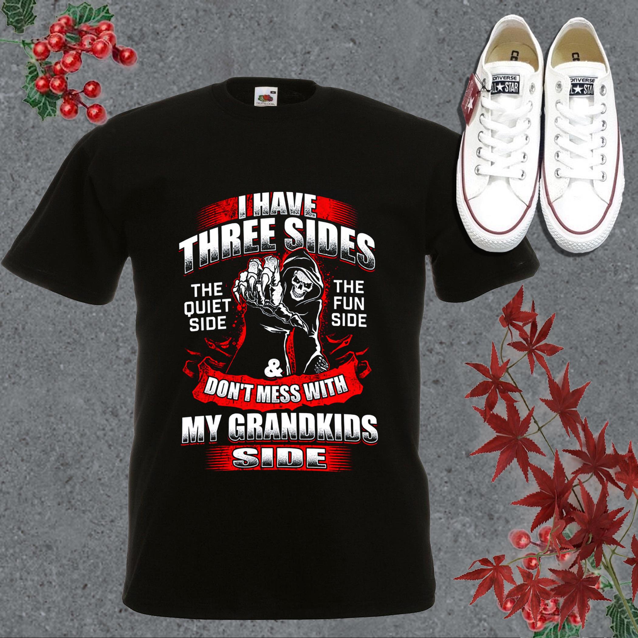 Original I Have Three Sides The Quiet Side The Fun Side And Don’t Mess With My Grandkids Side Shirt, I Have Three Sides Death Shirt