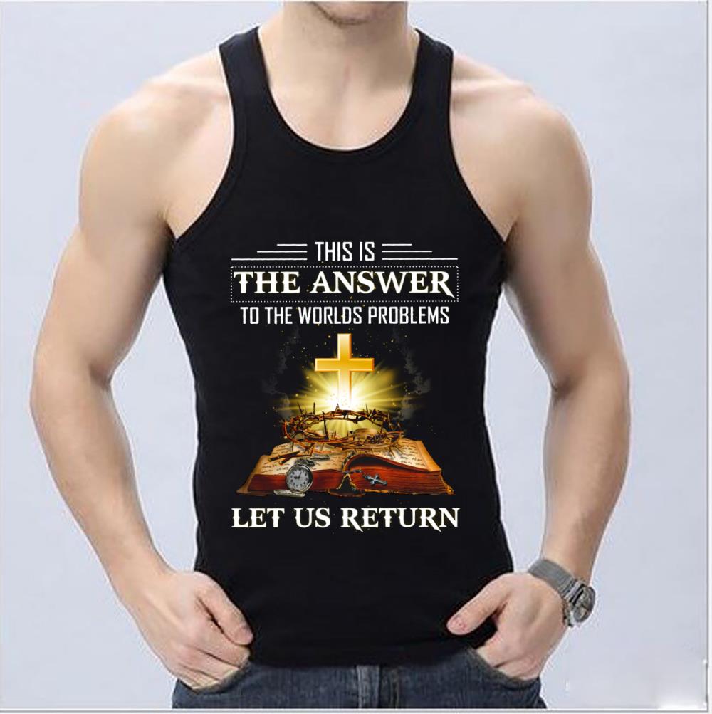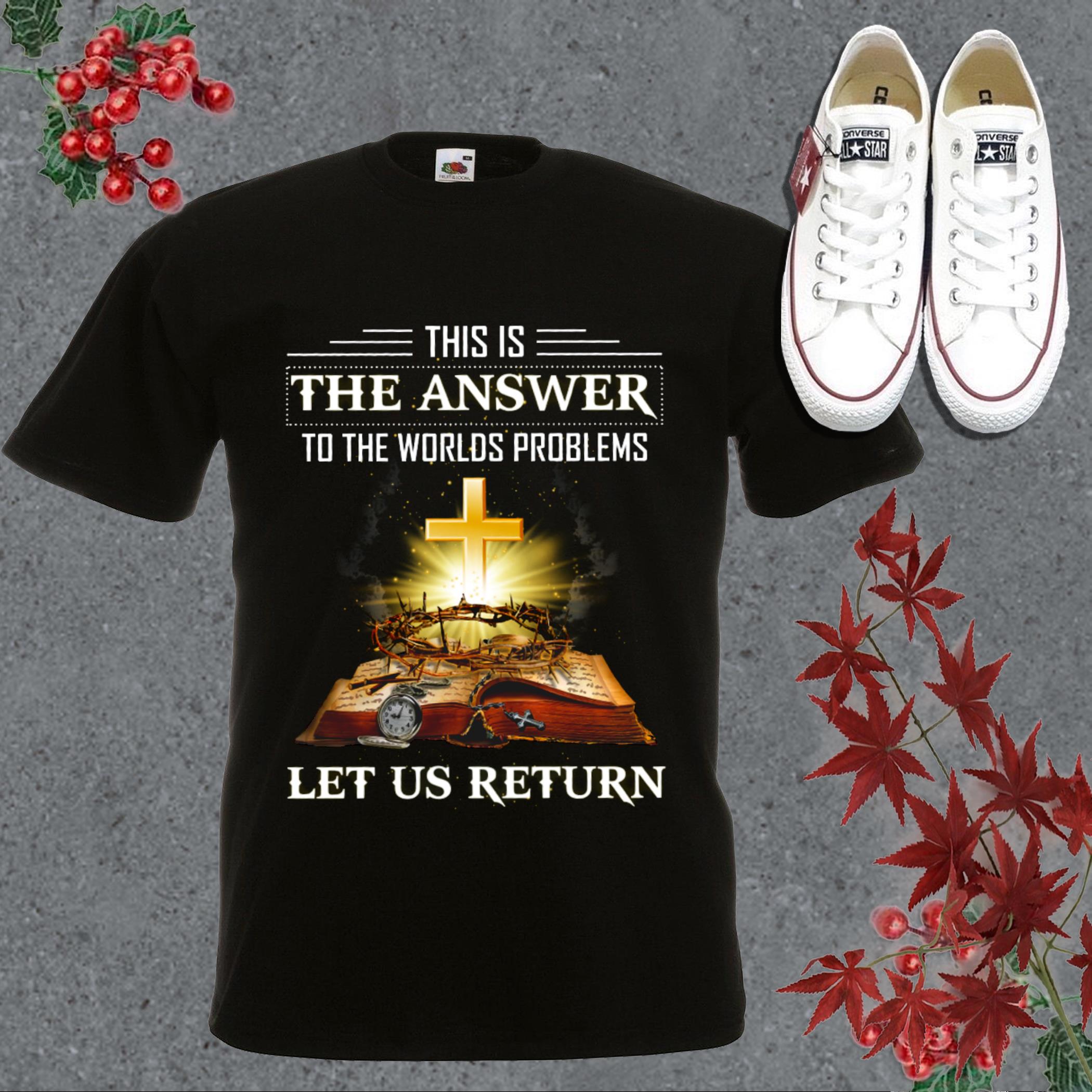 Original This Is The Answer To The Worlds Problems Let Us Return Shirt, The Cross Crucifix Book Shirt is perfect shirt for who love Trending. This shirt is designed based on Jesus by 100% cotton, more color and style: t-shirt, hoodie, sweater, tank top, long-sleeve t-shirt, youth tee. Great gift for your friend. They will love it. Click the button below to see price and buy it!