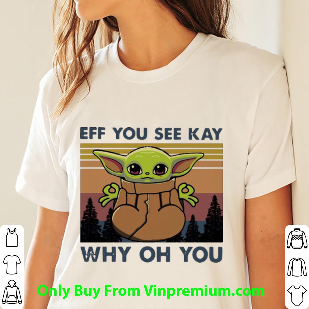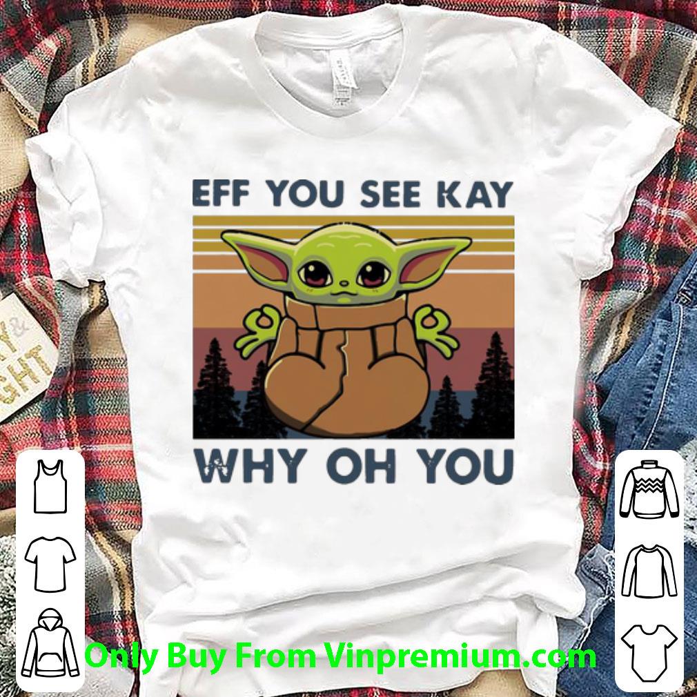 Original Vintage Baby Yoda Eff You See Kay Why Oh You shirt is perfect shirt for who love Trending. This shirt is designed based on Baby Yoda by 100% cotton, more color and style: t-shirt, hoodie, sweater, tank top, long-sleeve t-shirt, youth tee. Great gift for your friend. They will love it. Click the button below to see price and buy it!