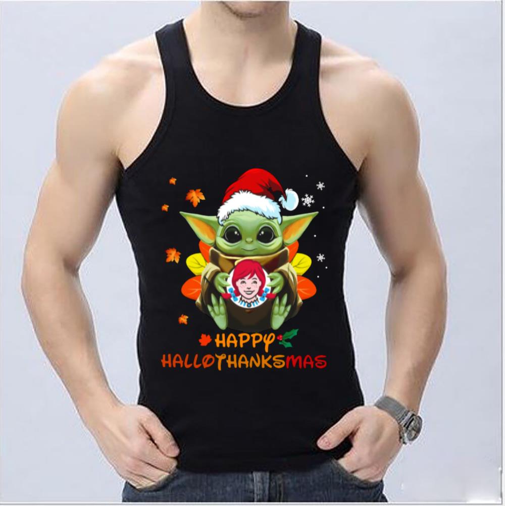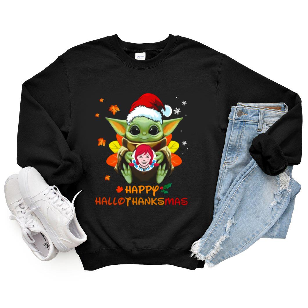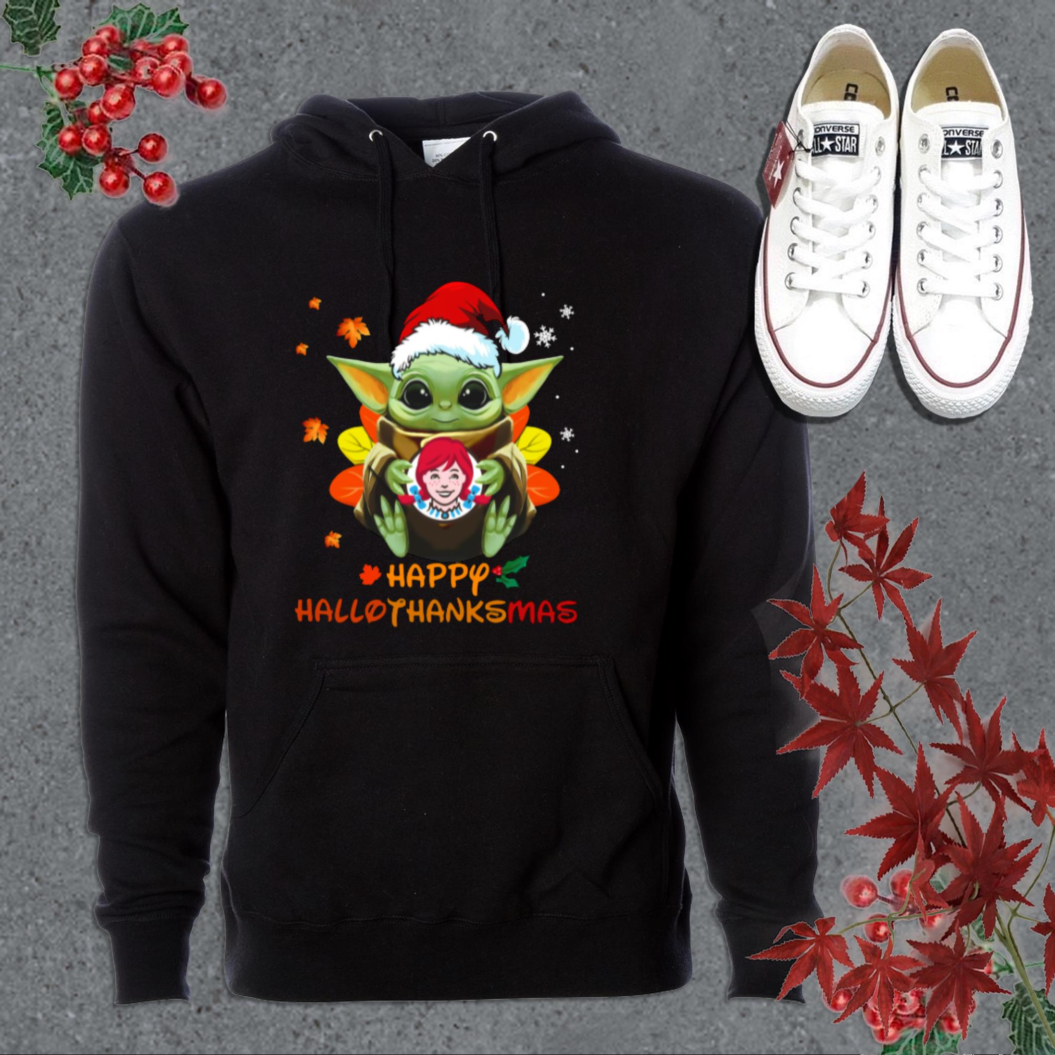 Premium Star Wars Baby Yoda Shirt, Santa Baby Yoda Hug Wendy’s Happy Hallothanksmas Shirt, Hoodie, Sweater, Longsleeve T-Shirt For Men and Women